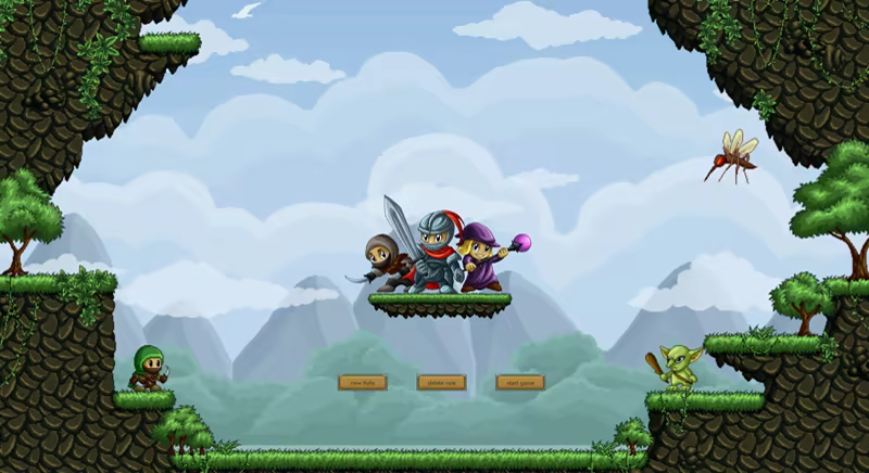 游戏简介 游戏共有20多种怪物类型,3种BOSS在半血时会召唤小怪物。如果能秒BOSS的话是不会触发召唤的。3个人物角色8个关卡。清理完当前关卡所有怪物时会提示进入下一关卡。 功击说明 功击怪物时会出现无敌状态,这种情况下是无法功击到怪物的。只有等怪物发动一次功击后无敌状态才会消失。所有角色和怪物在受伤情况下会有一个时间控制,在受伤时间控制的情况下无法作出任何操作。 骑士职业: 高功高防 法师职业: 高功低防 盗贼职业: 低功高速 八个关卡 2D横版模式搭建的关卡全场景关卡。最后二个关卡特别难,怪物的移动速度和功击速度非常快。