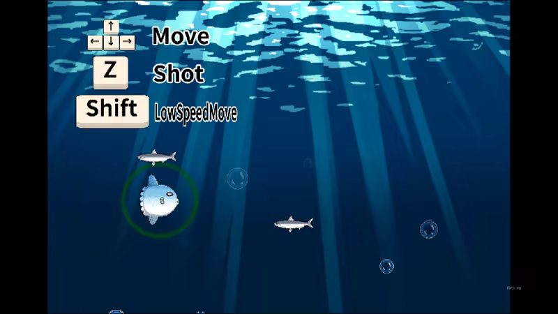 “翻车鱼冒险”是一款横向弹幕射击游戏。 玩家将操作翻车鱼与小女孩一同在海里冒险。 躲避四面八方的子彈, 擊敗海裡的危險生物。 游戏类型:弹幕射击 游戏时间:约三十分钟到两小时 游戏操作: 键盘方向键 移动 Z键 射击 X键 炸弹(Stage2后) Shift 慢速移动 炸弹可以清除画面上的敌方子弹