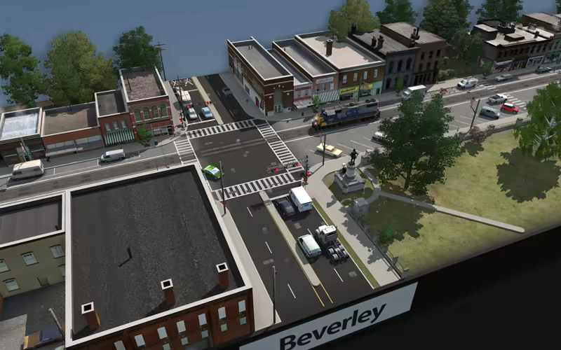 Dynamic Trackside Action: Sit back and marvel at the seamless movement of AI trains navigating loops through towns, industries, and even through walls, creating an immersive and lively environment.