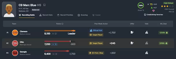 童子军和招募来自全国各地的玩家,在紧张的招募战中与其他学校竞争. 派你的团队来招募人员 安排正式访问 甚至提供NIL交易