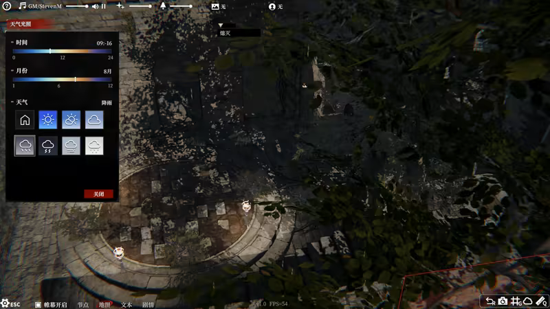 支持主持人(GM)模式和玩家(PL)模式,,GM可以在游玩过程中控制BGM音效、图片展示、NPC行动、场景布置、战争迷雾等。