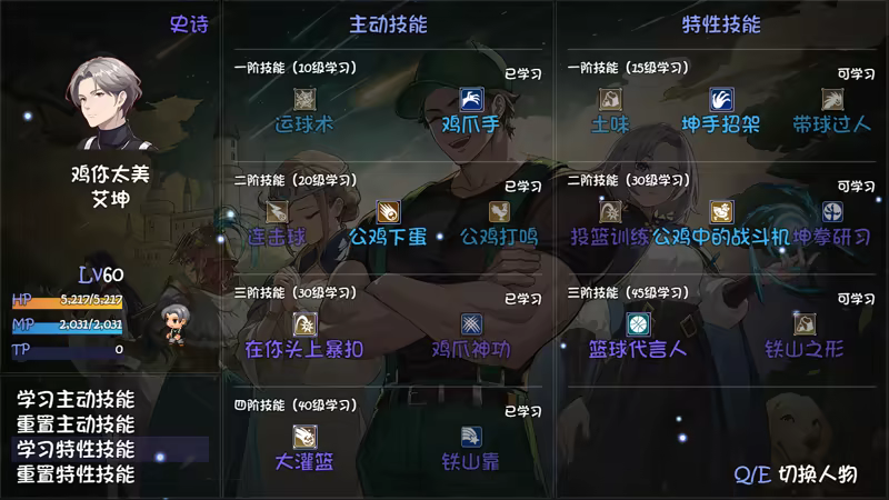 ◆50+名角色自由养成,搭配出心仪阵容。每名角色拥有独立技能树,例如可以让艾坤(角色)使用鸡爪手、铁山靠等技能进行物理输出,还可以让他使用大地系的篮球术或下蛋攻击敌人