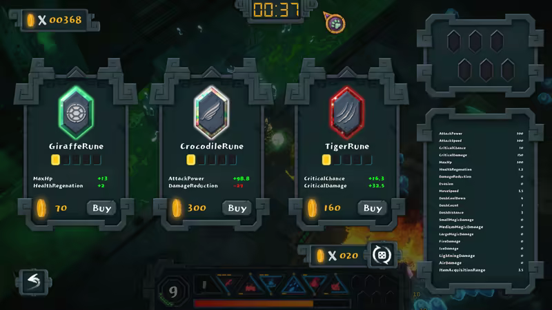 Boost Leshy's power with legendary runes! Spend hard-earned gold on epic buffs, then discover hidden upgrade shops to make them even stronger!