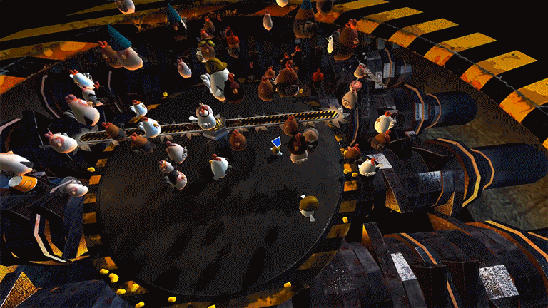 80 chicken players compete to be the last standing on an unstable disk above a gruesome grinder. The last player standing on the disk avoids being turned into a chicken nugget. Become #1 on the leaderboard and you'll be rewarded with a golden crown.