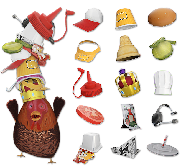 Nuggets unlock new hats, like a visor cap, ketchup cap, deep fry basket, and a drinking lid. Collect all the hats and show them to other players!