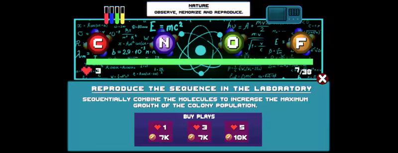 在这个迷人的增量模拟游戏中,管理资源、创造生命并确保数千个合成细胞群落的生存。 受到著名数学家约翰·霍顿·康威(John Horton Conway)的“生命游戏”的启发,其中细胞根据 4 条基本规则生存或死亡。 这场“放置革命”挑战您作为玩家实现稳定和繁荣的生态系统以确保物种繁衍,否则您将屈服于进化的挑战。 点击等于生命: 只要环境条件最佳。观察你的殖民地成长和扩张,但不要坐以待毙,要升级你的资源。 大自然是残酷的: 小心!此外,与所有生物体一样,恶性细胞也会产生,它们会试图自我克隆并扩散,以摧毁整个菌落。尽快提高你的防御技能来对抗它们并保护物种。 生物采矿或死亡: 如果得不到必需的元素,蜂群就会死亡!进入多细胞生物的内部,探索和收集对于化学键形成至关重要的分子,没有这些分子,生命就不可能存在。 增强纳米机器人细胞分子收集器和免疫防御系统。 有时候拥有资源并不意味着一切! 完美地组合一长串化学元素不是一项容易记忆或复制的任务,但这对于殖民地的繁荣是必要的。 奖励活动: 通过随机迷你游戏赚取更多额外的“硬币”来提高您的技能。 SynthetiCell BioClicker 展示了简单系统如何产生令人惊讶的复杂性,激发了许多领域的新研究和应用。 使用[b]约翰·霍顿·康威 (John Horton Conway) 的 4 条规则[/b]形成的惊人模式的真实例子。 加入这次生物合成体验,探索一个每次点击都很重要的世界!
