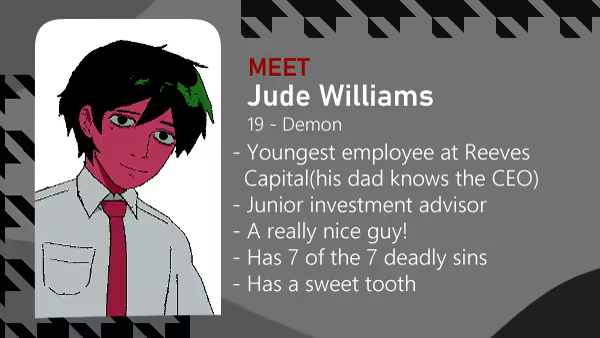 公司办公室的现代幻想视觉小说集. 与三个主要角色和两个侧面角色互动,通过建立关系来引导工作场所动态和政治的挑战,并为推进你职业生涯的最终目标赢得良好声誉.
