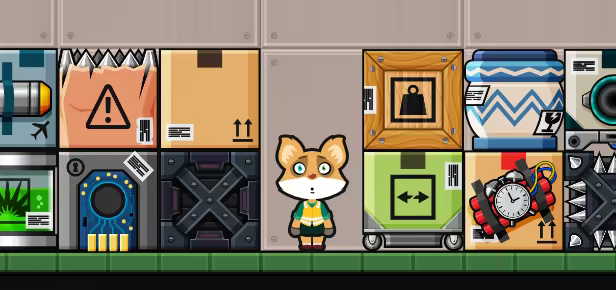 游戏中有几种不同类型的 “箱子”,每种都有独特的特性和机制。作为 KoKo,你需要利用你的技巧来 携带、丢下、扔、堆叠、跳跃 和 攀爬,并在手中拿着箱子。如果箱子挡住了你的路或让你抓狂,别犹豫,赶紧 踢开它!