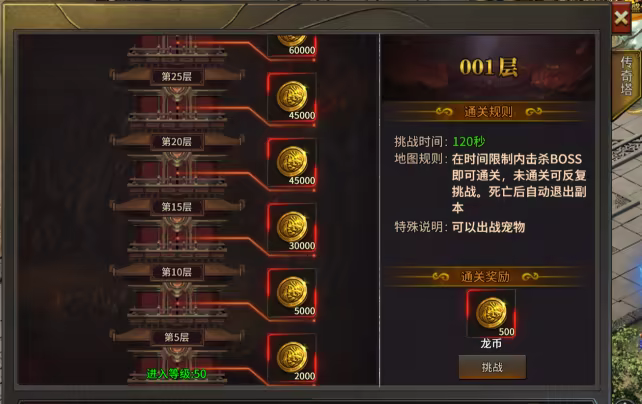 2)挑战通天塔不限次数,每通关一层上升一层。