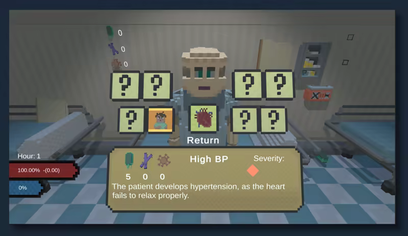 入住 住院 外科 - 每个病人都可以在入住时定制不同的开始. 将细菌从医院的地面上收集出来,管理资源来削弱你的病人,同时避免治疗. 对病人做手术 能让医院继续运转 但不要伤害他们太多!