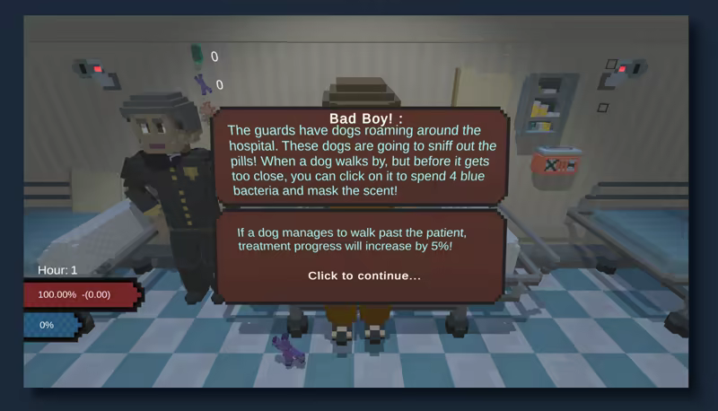 每一个病人的医院,你需要 仔细管理你的细菌资源 为了让病人病得足够好 准备做手术 医院其他工作人员将违背你的意愿,努力治疗患者,所以你必须迅速高效地工作! 如果病人在达到手术前得到完全治疗,医院就一文不值,我们不能有!