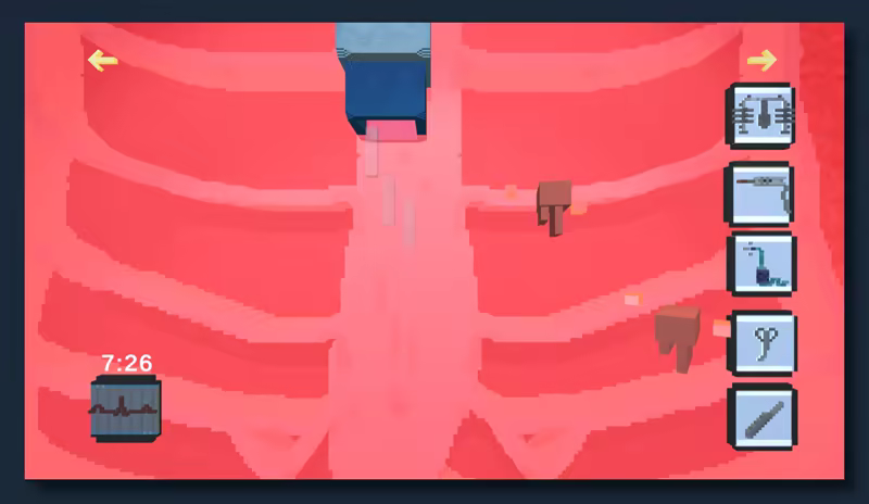 一旦你设法把病人放在手术台上, 没有什么能阻止你从病人身上 切除你所有能有价值的东西! 用你的时间剪切,扫描, 并利用工具进入病人 找到任何隐藏的 价值他们可能有! 无论是器官,吞噬的宝石,还是稀有的昆虫,当你看到它时,你会知道该拿什么.