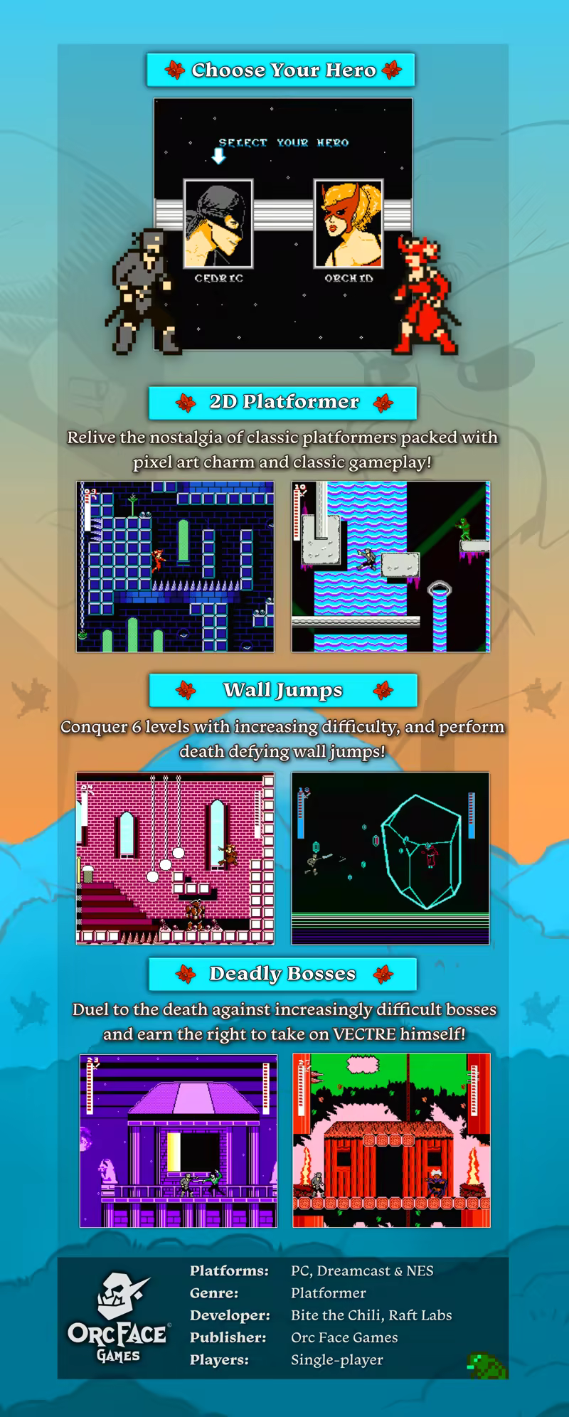 传奇之剑是一个8位动作冒险游戏,您扮演塞德里克和兰花,拼命试图从黑暗巫师Vectre的邪恶魔掌中取回传说中的传奇之剑!级别包括:-有趣的敌人-武器拾取-快速有条不紊的战斗-环境危害-困难的老板战斗-鸟类。