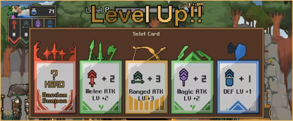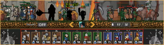 你是一个叫勇士和英雄战斗的"主人公" 你可以选择战士在战场上用"玛娜"作战. 另外,如果你升级,你可以选择召唤一个强大的英雄或者提升一个现有的英雄.