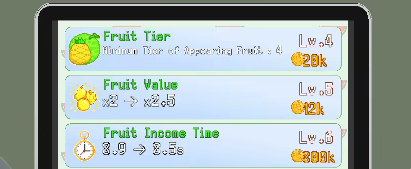 想要扩展你的咖啡馆,升级至关重要!提高水果收入、果汁价格等,让你的收益更高!