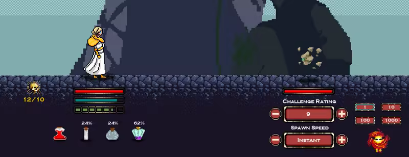 当你开始战斗时,你将有机会选择你的敌人的挑战评级,决定他们的力量. 此外,你可以调整他们的"春速"以确定你和他们对峙的频率. 强力药剂可以帮你,如果你被抽到!