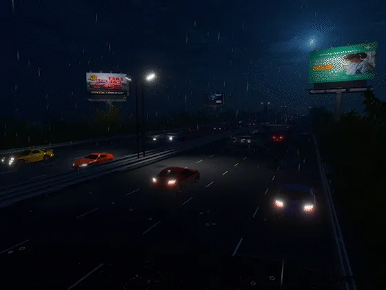 Enjoy night driving with different engines. Each engine offers a unique experience with its unique sound and driving feel.