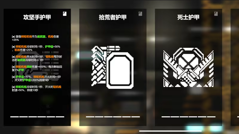 护甲将会大幅度改变作战方式,并且会提供伴生副武器,时机已至,我现在必须立即掏出我 射速更快的/命中更高的/口径更大的/范围杀伤的/附带溅射的/无视掩体的/自动索敌的 副武器开始射击