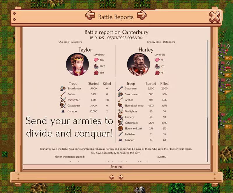 Expand strategically: Conquer new territories to expand your cities, and found budding new villages in strategic locations to prepare for the wars to come!