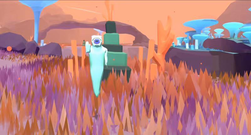 Traverse a surreal open world filled with winding paths and shifting biomes. Hike through colourful meadows, climb towering structures, jump across rocks, run through dark caves, slide down steep slopes or zipline from peaks.