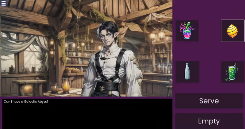 You are a bartender, but not in just one place or time. You exist across worlds, serving drinks in settings that shift with each new story. One night, you might be pouring ale in a medieval tavern. The next, you're mixing cocktails in a neon-lit cyberpunk club or a distant space station. Every location brings new faces, new conflicts, and new choices.