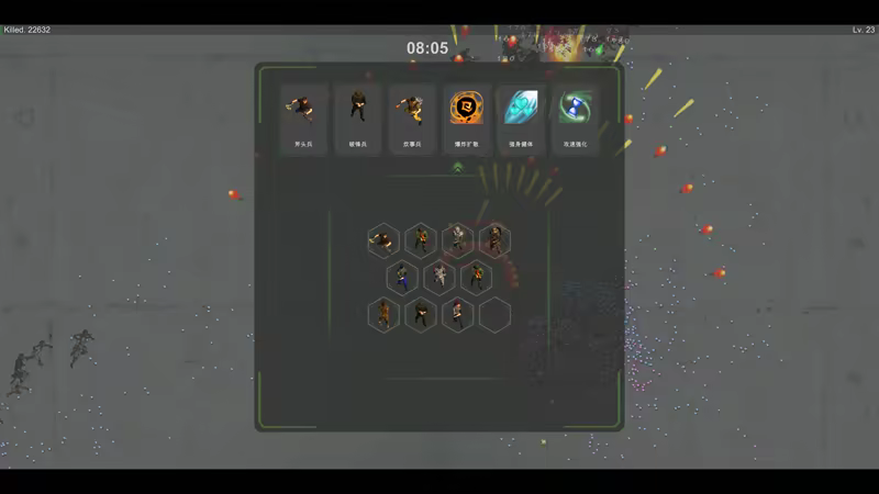 从零开始,招募最多10名精锐士兵,组建你的专属小队。4个指挥官,16种士兵,6种阵型,40种强化。选择升级策略,安排士兵站位,通过巧妙的排兵布阵,打造独一无二的战斗风格,应对无尽尸潮!