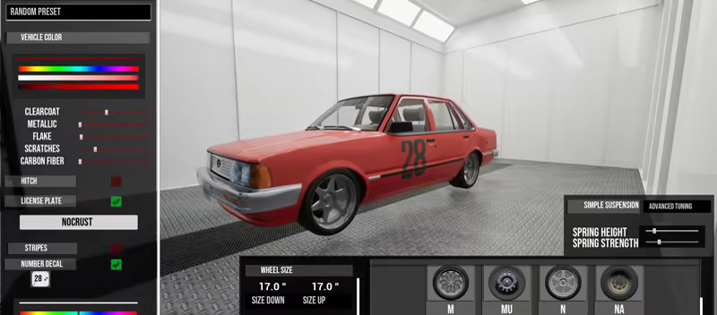 Vehicle Customization & Tuning: Personalize and optimize your vehicle’s performance with a range of customization options, including wheels, tires, body paint, and tuning setups. Adjust spring length, strength, dampening and more. Unlock new engines, transmission and forced induction options.
