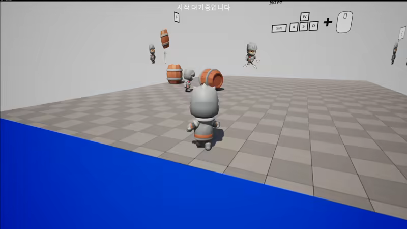파란 바닥으로 두 플레이어가 이동하면 게임이 시작됩니다.