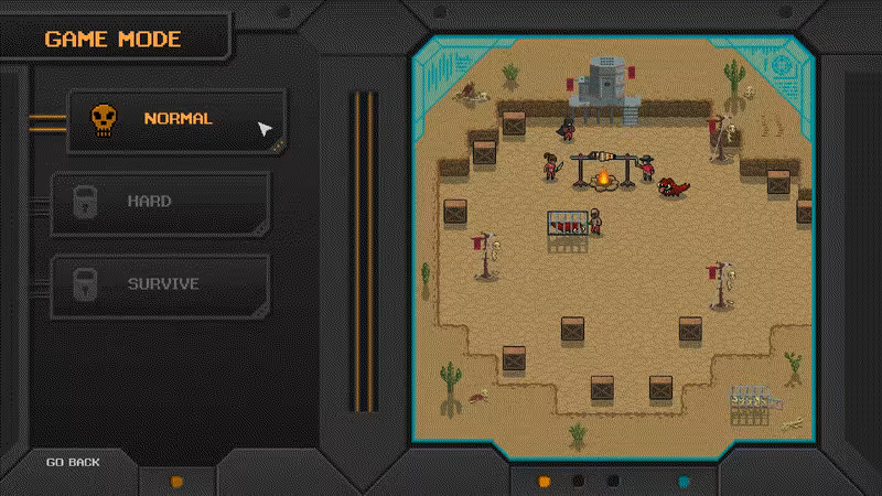 Normal - when you’re just starting out. Try, fail, buy some upgrades, dominate your foes and prepare for the mayhem of Hard Mode