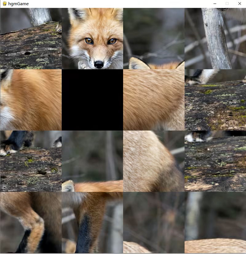 这是一个随机和谜题的游戏,其中完整的图像每次随机地被打散成4 * 4个小图像. 每个小图像的位置都是随机的,你需要将它们组装成完整的图像(为了让图像移动,最终的谜题会更小).