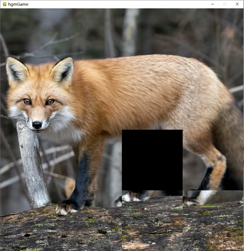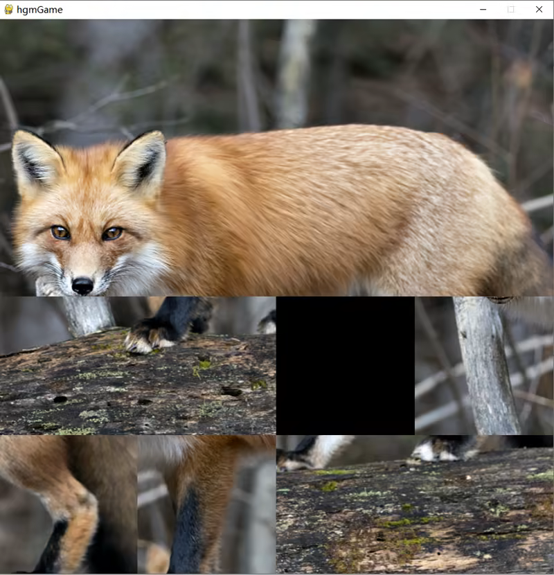 游戏步骤 : 在黑色方块周围的图像上点击鼠标左键,图像和黑色方块会切换位置. 目标是把所有小图像组装成完整的图像. 完整的图像如下: