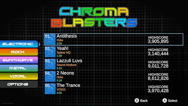 Chroma Blasters is a solo developed top-down twin-stick arcade shooter where enemy waves are shaped by music. With over 120 music tracks (25 in the Demo) and a fast, reactive color-matching gameplay, every track becomes a new battlefield.