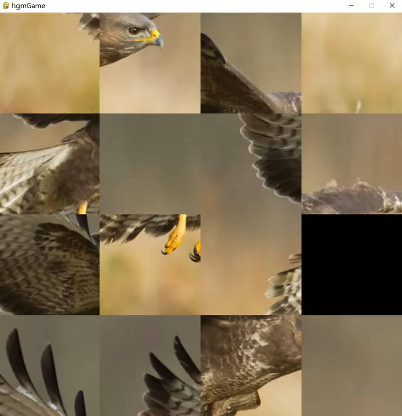 这是一个随机和谜题的游戏,其中完整的图像每次随机地被打散成4 * 4个小图像. 每个小图像的位置都是随机的,你需要将它们组装成完整的图像(为了让图像移动,最终的谜题会更小).
