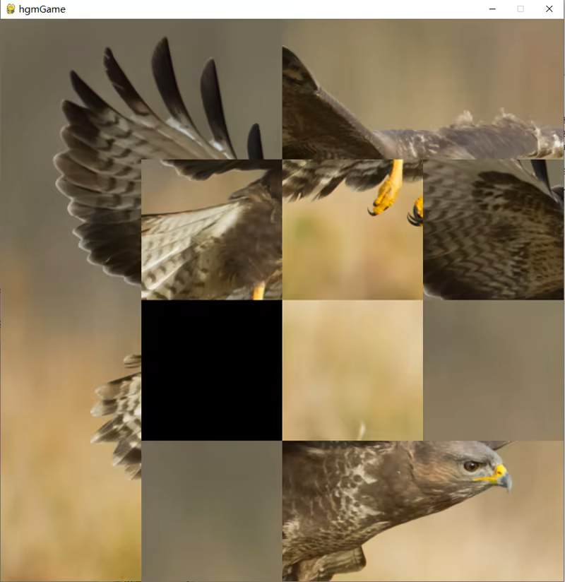 游戏步骤 : 在黑色方块周围的图像上点击鼠标左键,图像和黑色方块会切换位置. 目标是把所有小图像组装成完整的图像. 完整的图像如下: