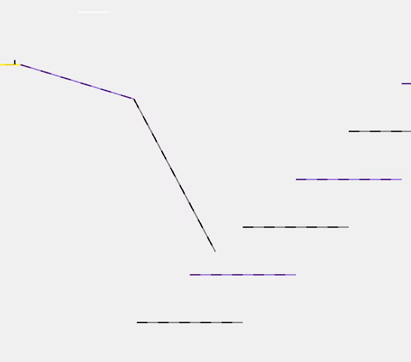 黑色和紫色的线条代表着每一天你都可以走上,跳下,滑向对面的障碍. 红线是敌人,每个关卡的目标是到达绿线. 到达黄线后,只要保持与黄线的接触,就能从2D角度看清全关;否则,你和莱纳斯只能靠自己了!