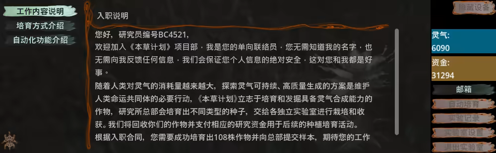 玩家作为一名研究员,会收到总部的不定期邮件,通过这些任务、吐槽、陈述、指令,玩家能够管中窥豹,觉察到一些惊天的秘密。