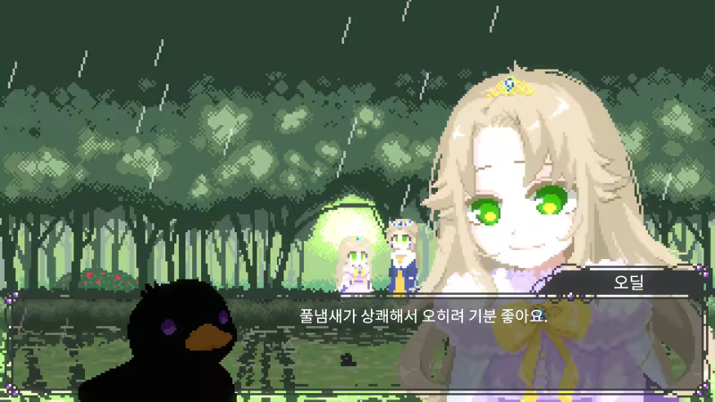 Merhen幻想动作冒险 “odile: Black Duckling tale” 是一款游戏,它变成了一只小鸭子,并通过夺走人类的力量并收集多个结局而成长。它的主要功能包括漂亮的点图形,童话般的故事,以及与npc的有趣动作互动。仅使用键盘的简单控件。移动: 箭头键 (上,下,左,右) / Shift (运行) 动作: Z (跳跃),X (闪避),C (攻击),V (变换) 快进: Tab跳过: esc完整的游戏开始于在树林里被欺负的黑鸭子跟随公主,萨满或猎人之一进入城镇。你会加入谁?操纵黑鸭来夺取人类的能量。占用大量能量可以杀死人类,有时甚至是目击者。如果你让他们害怕跑,黑鸭子可能会有危险。通常没有人注意到小鸭子的隐蔽行为,但有时会有攻击性npc看穿鸭子的黑魔法,导致战斗。向上,向下,跳跃和滚动,以避免攻击。虽然 “奥迪尔” 是一款故事情节丰富的游戏,但大部分文字都是通过NPC的演讲泡泡传递的,而不会停止游戏。SCG对话事件只能在故事不会干扰游戏玩法并帮助您沉浸其中的水平上进行。在三个阶段执行皮带滚动动作: 宫殿,寺庙和小酒馆。并体验28个多重结局。早期访问版本只允许你玩 “宫殿路线”,只包括13个结局。我们计划添加更多的路线,并允许您通过未来的更新收集更多的结局。