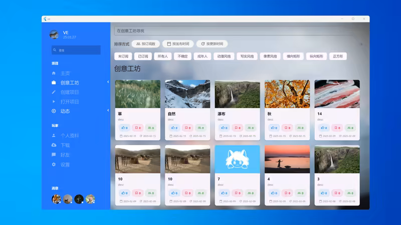 互动视频游戏引擎是一款专为互动视频游戏打造、集创意、便捷、高效于一体的游戏开发工具。它就像一个充满魔法的工具箱,功能强大,操作简单。不论你是专业开发者还是程序小白,都能轻松玩转互动视频游戏开发,打造独属于你的游戏!还可以一键导出,向世界分享你的创意! 美观简洁的软件界面 清晰明了的游戏逻辑 从情节设计、上传素材到流程编排,上手快速、流程简明,借助互动视频游戏引擎行云流水般地进行游戏创作! 方便快捷地获取素材 支持本地视频导入,操作简单。还可使用创意工坊免费分享和下载海量素材,所获取的素材不仅能在您的素材库清晰查看,还可嵌入制作开发流程图,方便预览和编辑。 简洁的剧情编辑工具 开发者可以使用简单直观的剧情编辑工具来构建游戏的故事框架。无需复杂的编程知识,就像在玩拼图一样轻松组合剧情节点、角色对话和互动环节,大大缩短开发周期,让更多的创意能够快速地转化为实际的游戏内容。 高质量的视频播放器 引擎内置的视频播放器拥有播放、倍速、截取等丰富功能,不仅能够流畅地播放与演示视频素材,呈现超高清的视频游戏画面,使您的游戏将拥有电影般的视觉效果,带给玩家极致的视觉体验,还能够实现素材的即时编辑,极大地提高游戏的开发效率。 自由发布作品以商用 想发布您的游戏成果?软件提供作品导出功能,导出的程序包具有强大的跨平台兼容性,您可以轻松地将游戏部署到多个平台进行发布,用创意创造收益!