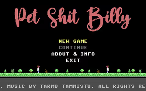 Pet Shit Billy is a lovingly-crafted parody of 1980s multi-screen platformers. Explore dozens of interconnected rooms filled with bizarre humor, pun-filled names, and hidden surprises. Dodge flying animals, angry janitors, and unflushable disasters as you try to clean the entire zoo before time runs out.
