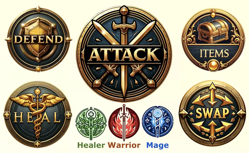 Battle in teams of three heroes. Speed determines turn order. Choose to attack, defend, or swap—every decision matters.