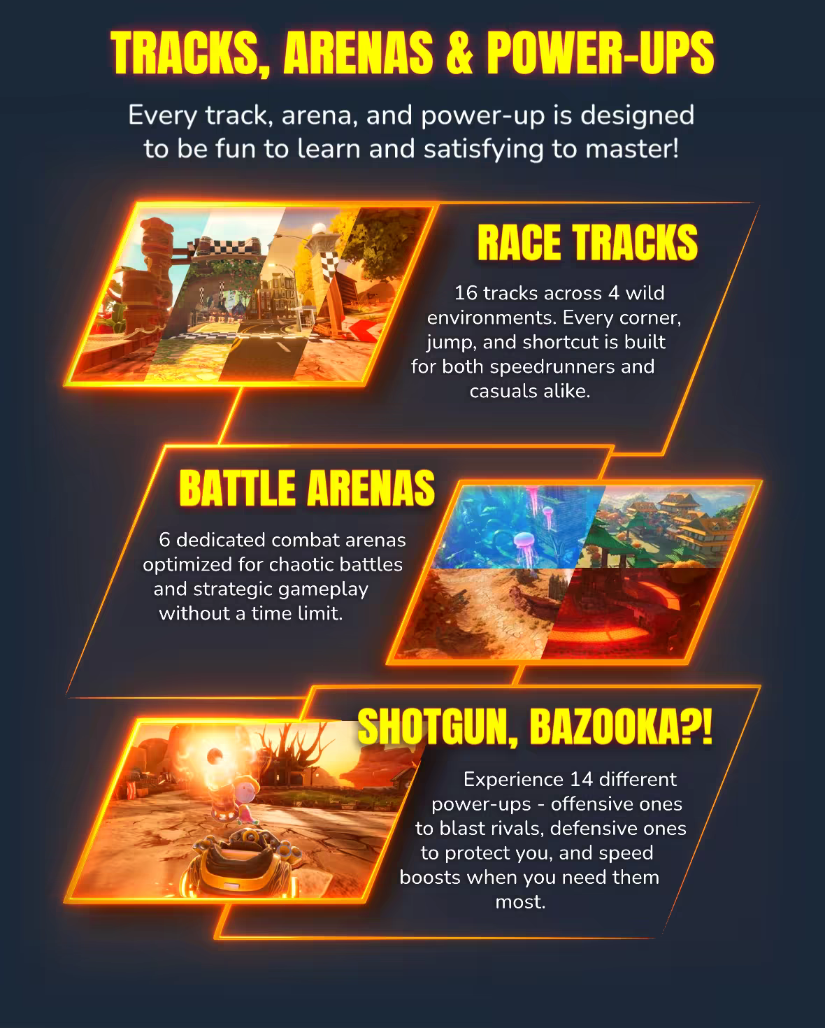 We are a small indie studio from Poland with a goal to create the best kart racing game on the platform!