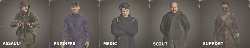 选择五大专精职业中的一种,每种职业都有专属装备与定位:突击兵、工程师、医疗兵、侦察兵与支援兵。每个角色都是团队成功的关键。