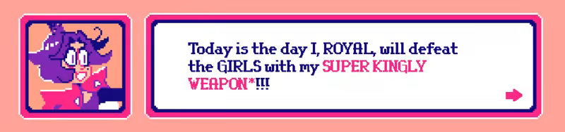 Hover over pink words to learn more about ROYAL! What's his SUPER KINGLY WEAPON? How many PARTIES has he been to? How many games has he starred in?!?