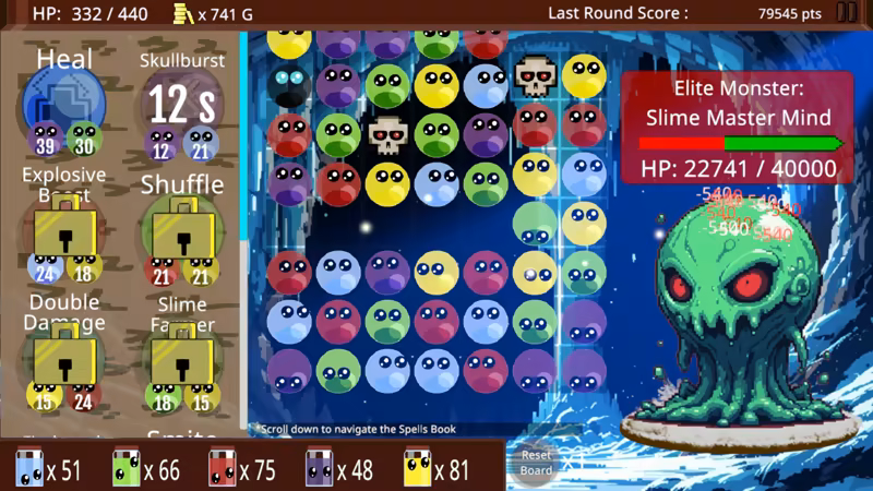 通过策略性地匹配史莱姆为你的法术提供能量,每次游戏中大约要经历 12 场激烈的战斗。