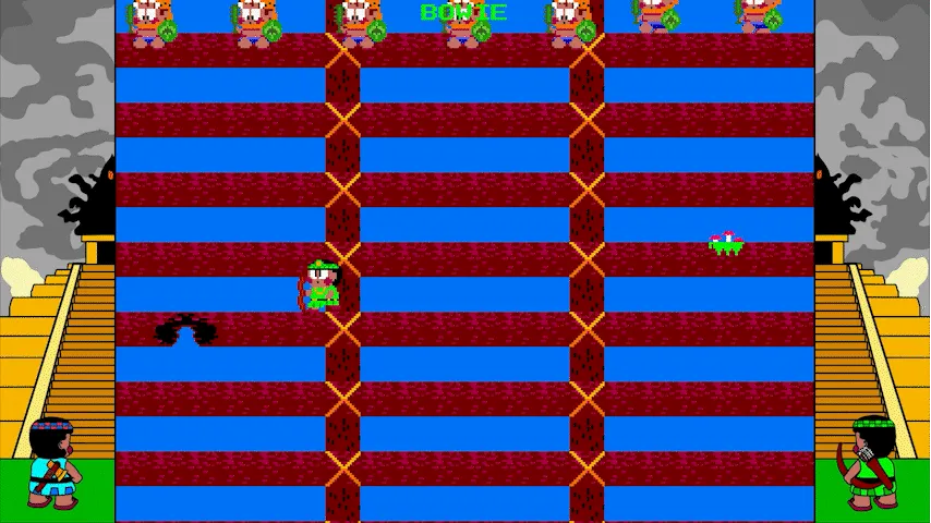 游戏包含六个独特世界,每个世界都有五个关卡,挑战多样——从垂直卷轴的平台关卡,到激烈的Boss战和射击类 (shoot 'em up) 关卡。每个世界都采用细致的像素风格绘制,配色灵感来自经典游戏 Rainbow Islands,呈现出浓郁的复古氛围。