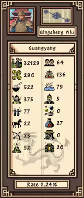 深度省份管理系统 – 管理包括士兵、粮草、农作物、战马、弓箭和兵器在内的多种资源。训练军队、犒赏将领、搜寻人才,并通过采矿、贸易与行商支援,扩展你的战争机器。