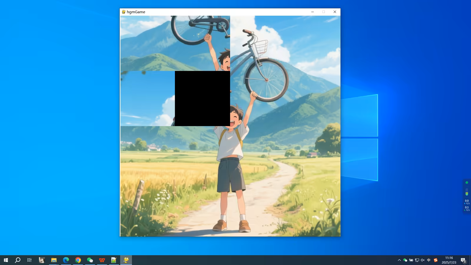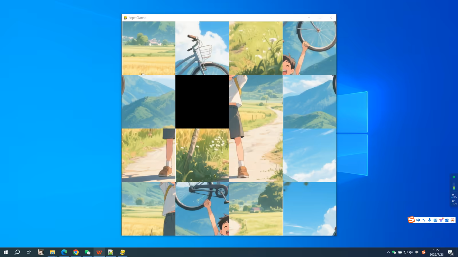这是一个随机和谜题的游戏,其中完整的图像每次随机地被打散成4 * 4个小图像. 每个小图像的位置都是随机的,你需要将它们组装成完整的图像(为了让图像移动,最终的谜题会更小).