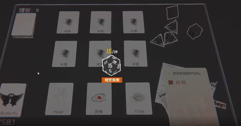 在解密的过程中, 一些地方将可以使用骰子进行“检定”,不同的检定结果会带来完全不同的分支