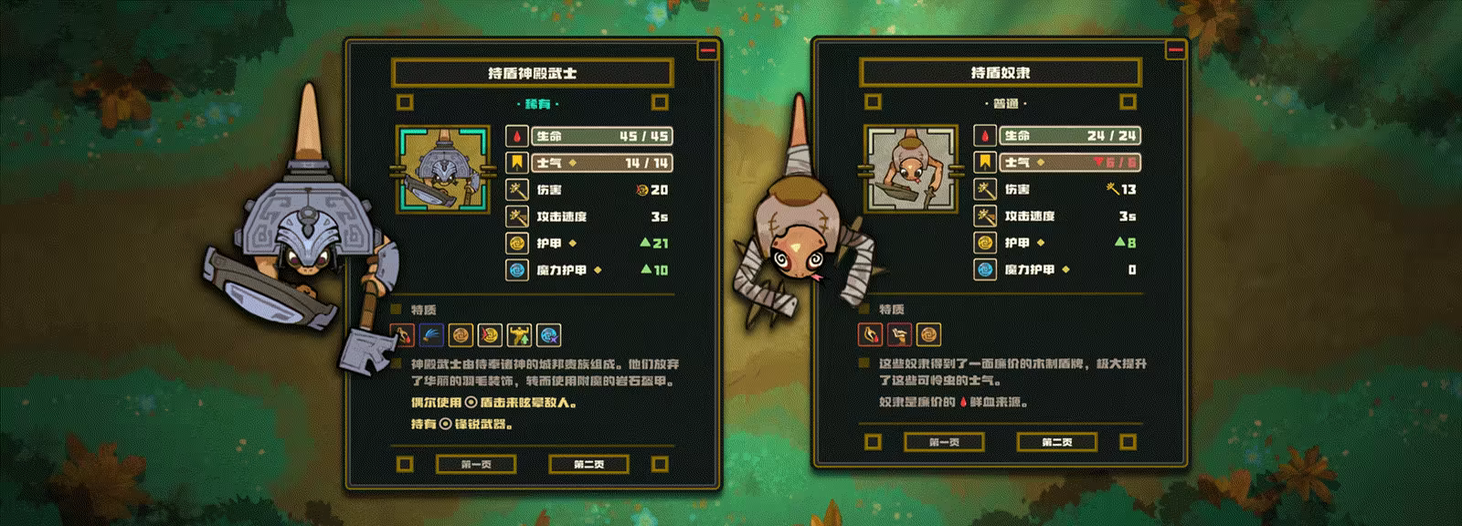 游戏融合了Roguelike推进与自走棋式战术战斗。你需要精准部署、临场施法、献祭士兵,以胜利换取神的眷顾。在翡翠城中,你可以强化军队、获得祝福、打造属于你的战斗风格。