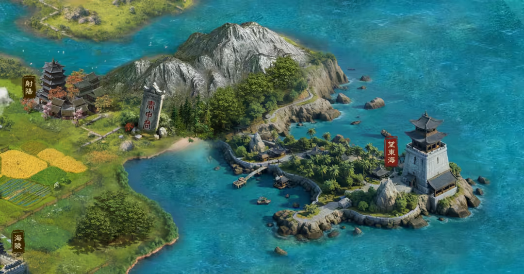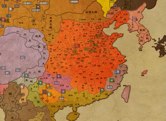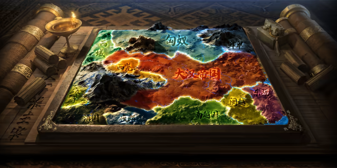 游戏地图十分宏大,东至日本,西至中亚咸海,北至贝加尔湖,南至爪哇;涵盖了中华文明的几个圈层:汉土 → 四夷 → 宣威 → 化外